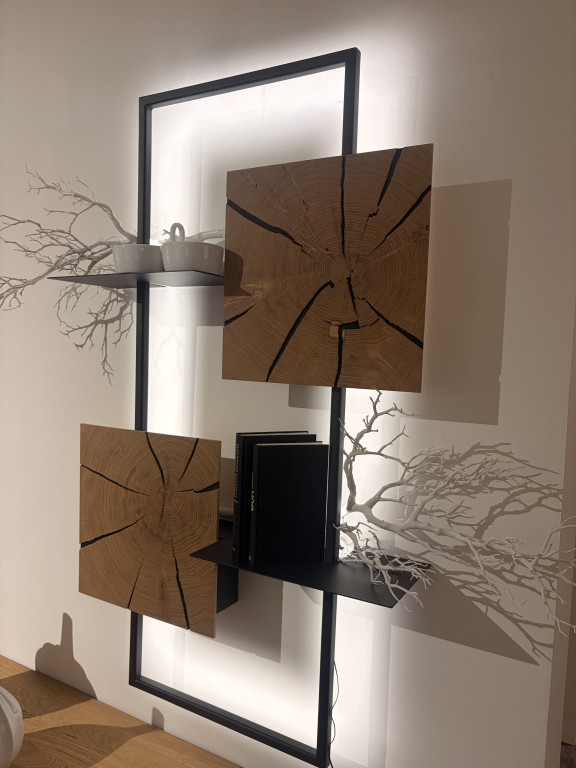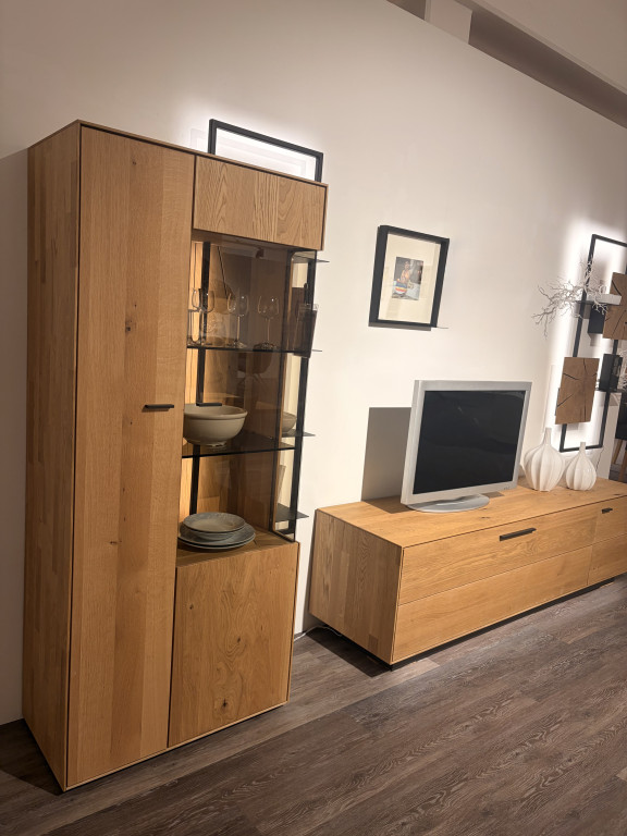 - Korpus & Front: Wildeiche massiv- inkl. Metallrahmen schwarz - inkl. Funkdimmer, LED-Rahmen-Beleuchtung und LED-Unterboden