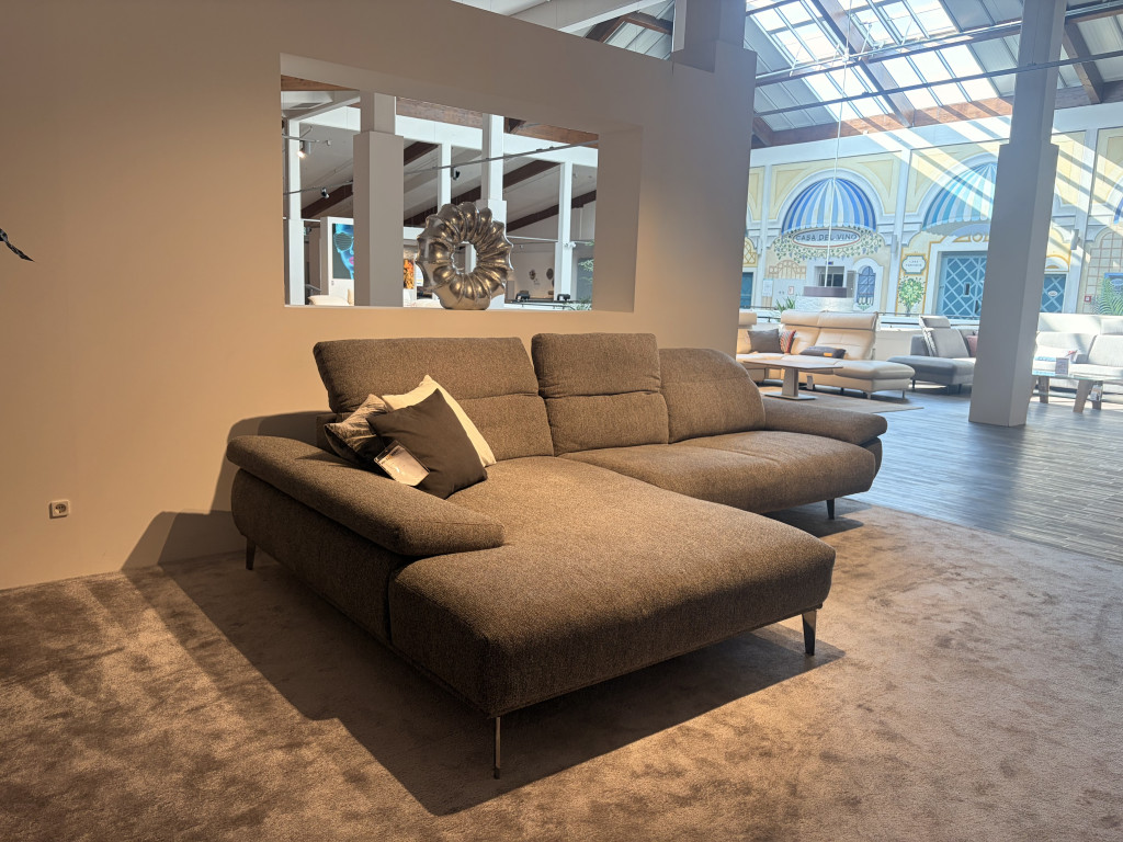 - Longchair (B: 146cm T: 207cm H: 80cm)- Sofa rechts (B: 198cm T: 105cm H: 80cm)- inkl. Kopfstützverstellung, Sitzteilverstellung und Sitzauszug mit Motor- Stoff: Grey